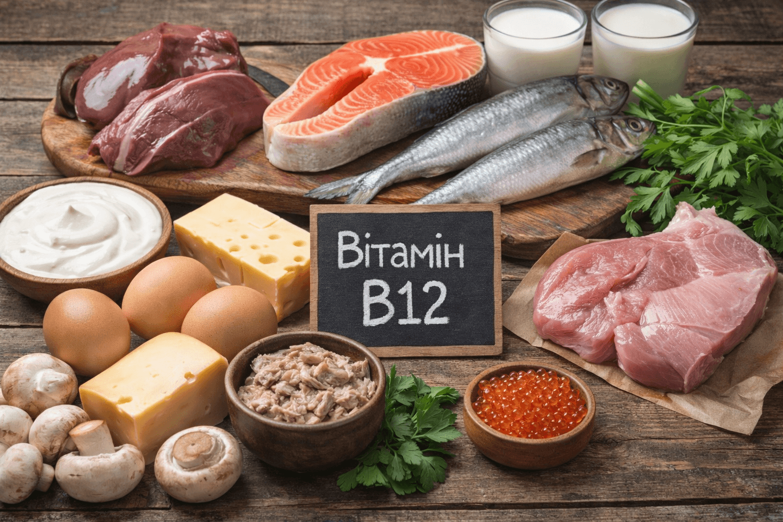 - у періоди стресу або великих навантажень — контролюйте рівень B12